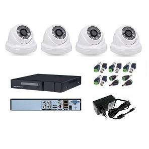 4-х канальный AHD видеорегистратор, 4 купольных камеры, разъемы, блок питания. Возможна самостоятельная установка, не требуются специальные навыки и инструмент.